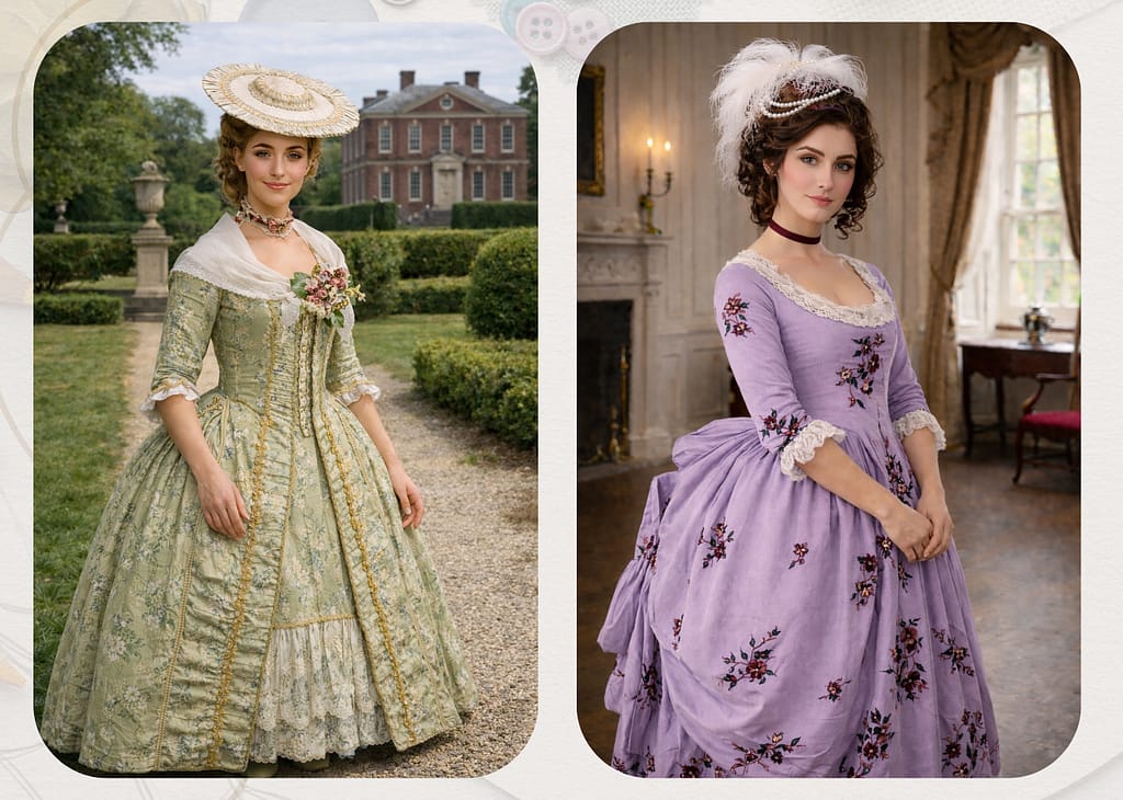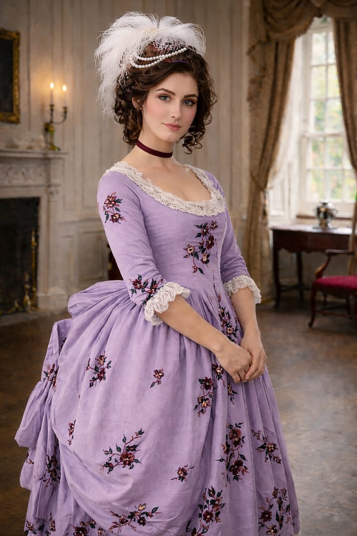 Below, we have several examples of what kind of attire a woman of the planter class in the 1770s would have worn, courtesy of the Metropolitan Museum of Art.