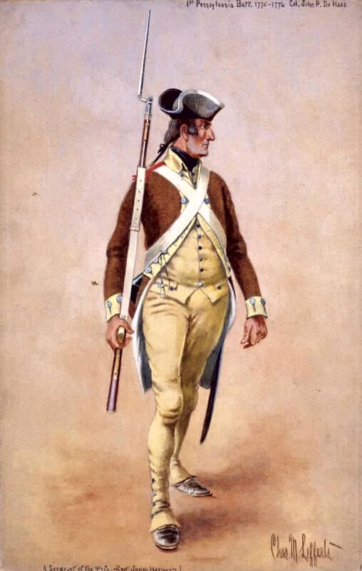 Our search then met a snag. We found no publicly accessible portrait of a 4th Pennsylvania Battalion captain. The closest image shows a sergeant from the 4th Company, 1st Pennsylvania Battalion. That image dates from 1775 to 1776.