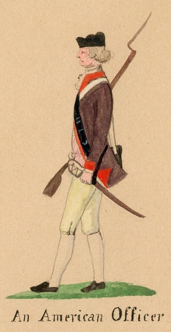 A sergeant ranked below a captain. Still, we can estimate Persifor’s attire. We used that image, Zlatich’s 1974 book, and other contemporary images. One image below shows an unnamed officer from 1778.