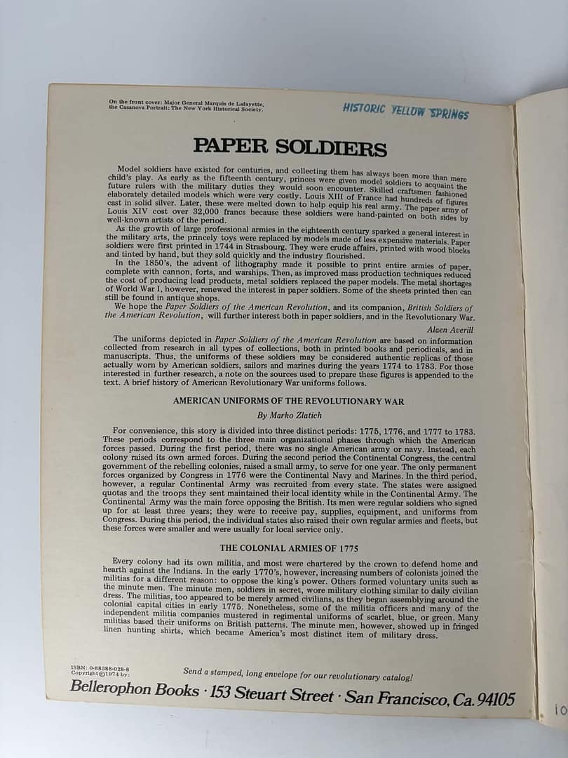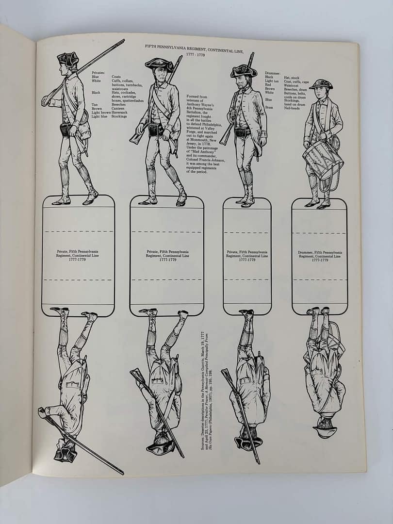 To learn what Persifor wore, we consulted a reference book from our archives. Persifor served as an officer in the 4th Pennsylvania Battalion. The book details well-researched American Revolution military uniforms.