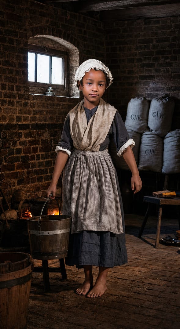 In 1778, Lucia likely lived under labor, surveillance, and dependence at Washington Hall. Enslaved children in elite Pennsylvania households often started domestic work very young. Girls assisted with childcare, cleaning, laundry, water carrying, sewing, and serving meals.