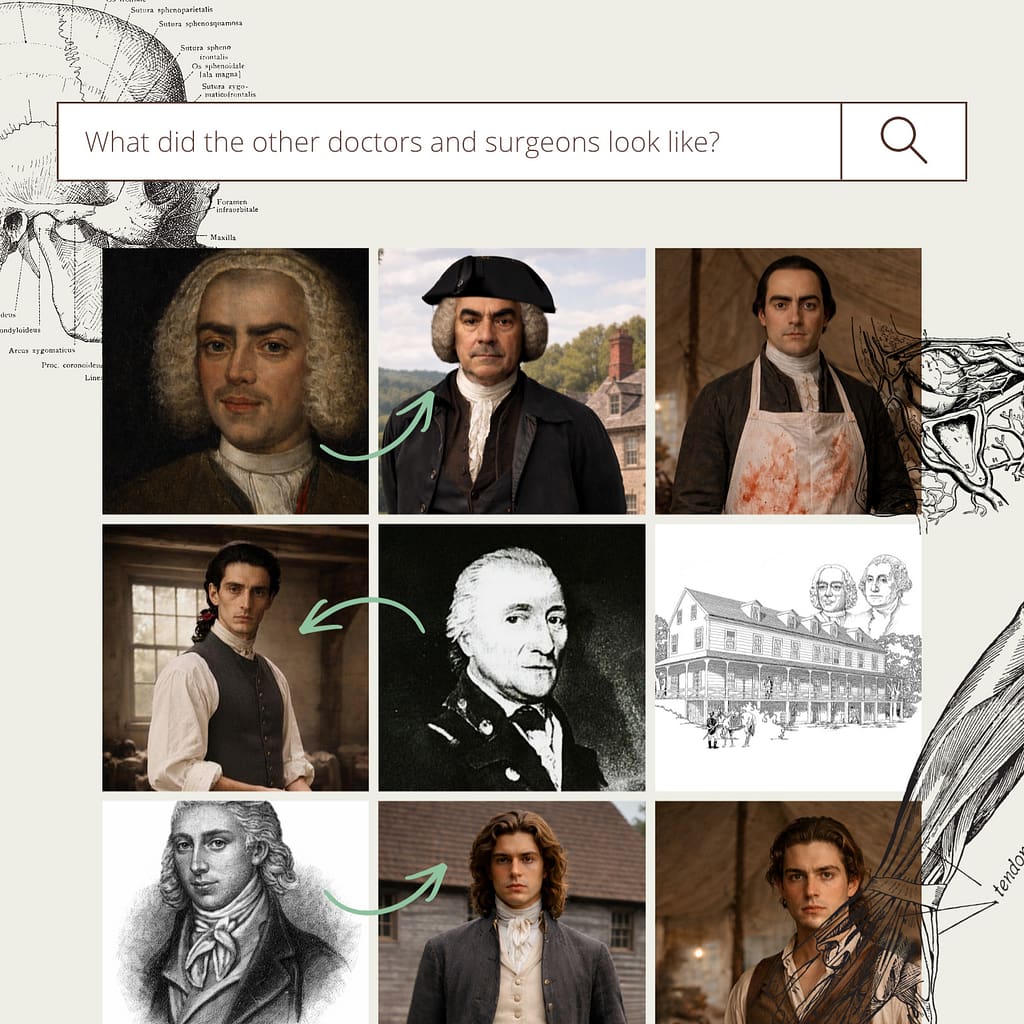 Research tells us that Otto consistently presented himself as distinctly German in appearance and identity, even while in America. We will German physician clothing styles from the 1750s for accuracy, and combine them with Philadelphian physicians from the 1770s.