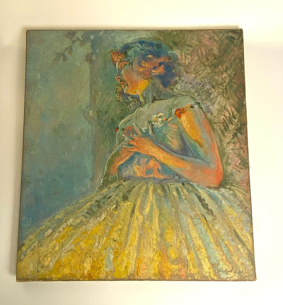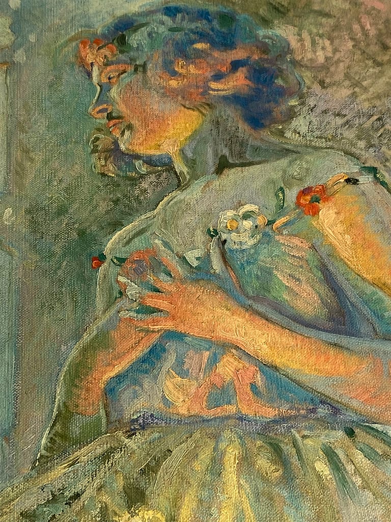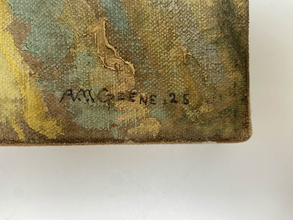 This unnamed oil painting of a ballet dancer shows Albert Van Ness Greene’s work from 1925. In it, we can see his signature use of light and color; something other students mention in the recording attached above.
