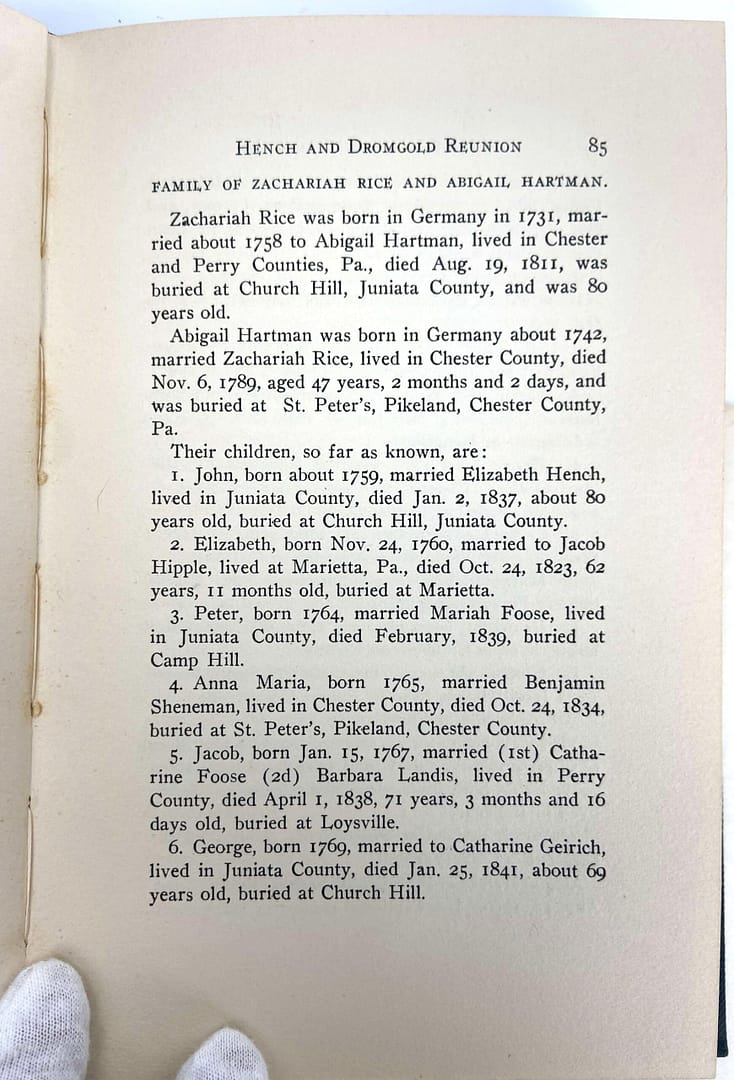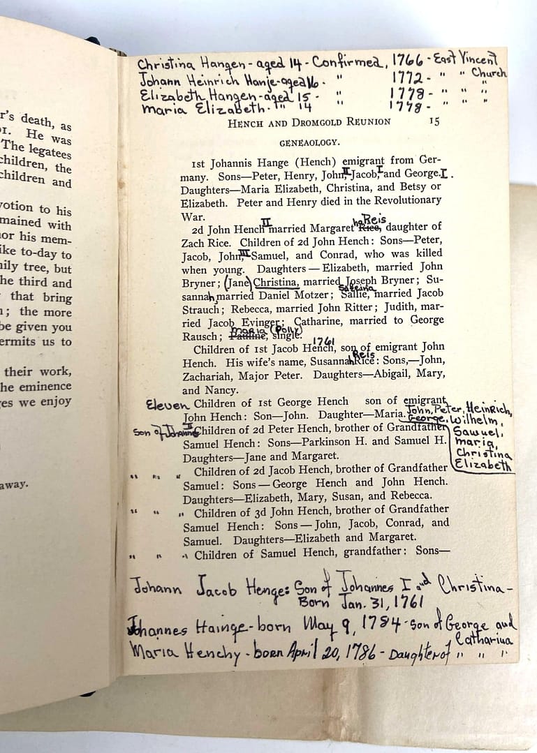 Extremely helpful to our ongoing research, these records compiled by Mrs. Lelia Dromgold Emig in 1913 shed light on what the descendants of Abigail Hartman-Rice and Christina Hench thought of their ancestors over 100 years ago.