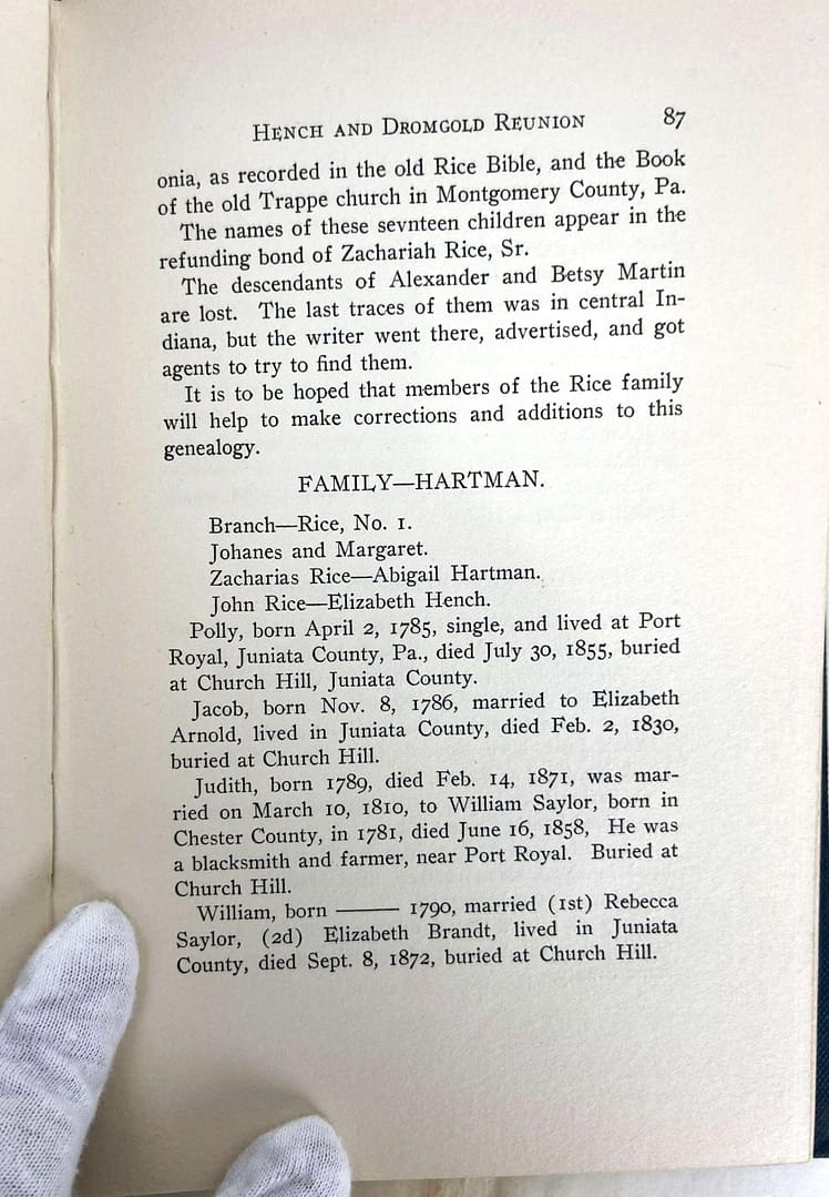 We have chosen to highlight helpful sections of this report above. Reading through them can help us learn ore about the Hartman-Rice family history, both from genealogical records and family folklore.